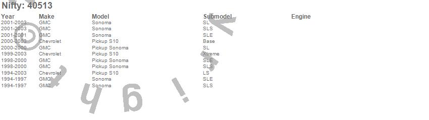 Below is an abbreviated list of applications for the Pro-Line Replacement Carpet.S10 Pickup, Sonoma, Chevrolet, GMC, 2003, 2002, 2001, 2000, 1999, 1998, 1997, 1996, 1995, 1994