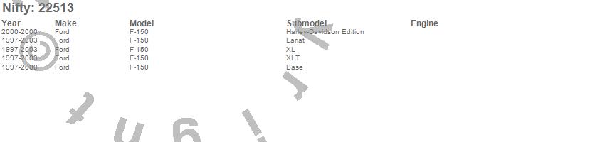 Below is an abbreviated list of applications for the Pro-Line Replacement Carpet.F-150, Ford, 2003, 2002, 2001, 2000, 1999, 1998, 1997
