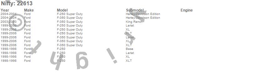 Below is an abbreviated list of applications for the Pro-Line Replacement Carpet.F-250, F-250 Super Duty, F-350 Super Duty, Ford, 2006, 2005, 2004, 2003, 2002, 2001, 2000, 1999, 1998