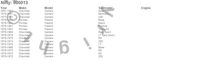 Below is an abbreviated list of applications for the Pro-Line Replacement Carpet.Camaro, Firebird, Chevrolet, Pontiac, 1981, 1980, 1979, 1978, 1977, 1976, 1975, 1974, 1973, 1972, 1971, 1970