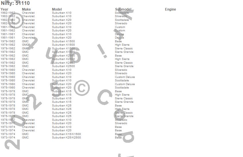 Below is an abbreviated list of applications for the Pro-Line Replacement Carpet.K10 Suburban, K15 Suburban, K15/K1500 Suburban, K1500 Suburban, K20 Suburban, K25 Suburban, K25/K2500 Suburban, K2500 Suburban, Chevrolet, GMC, 1982, 1981, 1980, 1979, 1978, 1977, 1976, 1975, 1974, 1973