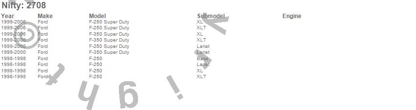 Below is an abbreviated list of applications for the Pro-Line Replacement Carpet.F-250, F-250 Super Duty, F-350 Super Duty, Ford, 2006, 2005, 2004, 2003, 2002, 2001, 2000, 1999, 1998