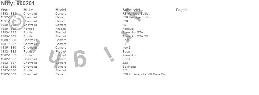 Below is an abbreviated list of applications for the Pro-Line Replacement Carpet.Camaro, Firebird, Chevrolet, Pontiac, 1992, 1991, 1990, 1989, 1988, 1987, 1986, 1985, 1984, 1983, 1982