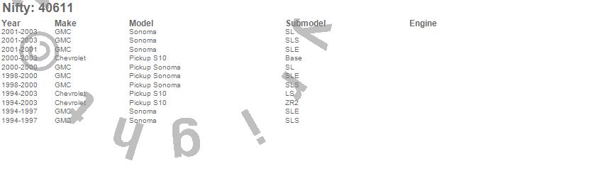 Below is an abbreviated list of applications for the Pro-Line Replacement Carpet.S10 Pickup, Sonoma, Chevrolet, GMC, 2003, 2002, 2001, 2000, 1999, 1998, 1997, 1996, 1995, 1994