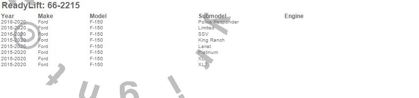 Below is an abbreviated list of applications for the Front Leveling Kit.F-150, Ford, 2020, 2019, 2018, 2017, 2016, 2015