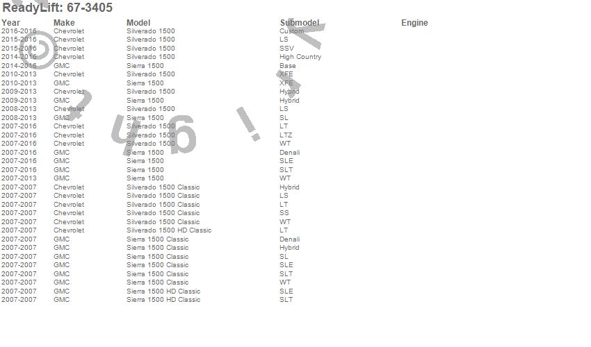 Below is an abbreviated list of applications for the Control Arm Bushing.Sierra 1500, Sierra 1500 Classic, Sierra 1500 HD Classic, Silverado 1500, Silverado 1500 Classic, Silverado 1500 HD Classic, Chevrolet, GMC, 2016, 2015, 2014, 2013, 2012, 2011, 2010, 2009, 2008, 2007