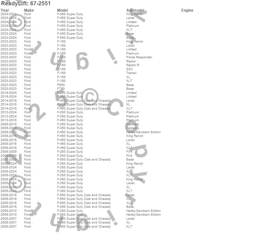 Below is an abbreviated list of applications for the Coil Spring Spacer.F-150, F-250 Super Duty, F-350 Super Duty, F-450 Super Duty, F-550 Super Duty, F650, F750, Ford, 2025, 2024, 2023, 2022, 2021, 2020, 2019, 2018, 2017, 2016, 2015, 2014