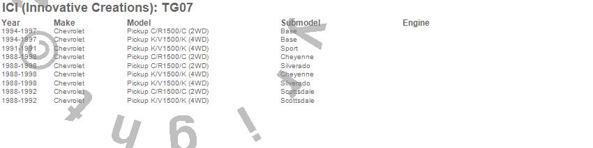 Below is an abbreviated list of applications for the Tailgate Protector.C1500 Pickup, K1500 Pickup, Chevrolet, 1998, 1997, 1996, 1995, 1994, 1993, 1992, 1991, 1990, 1989, 1988