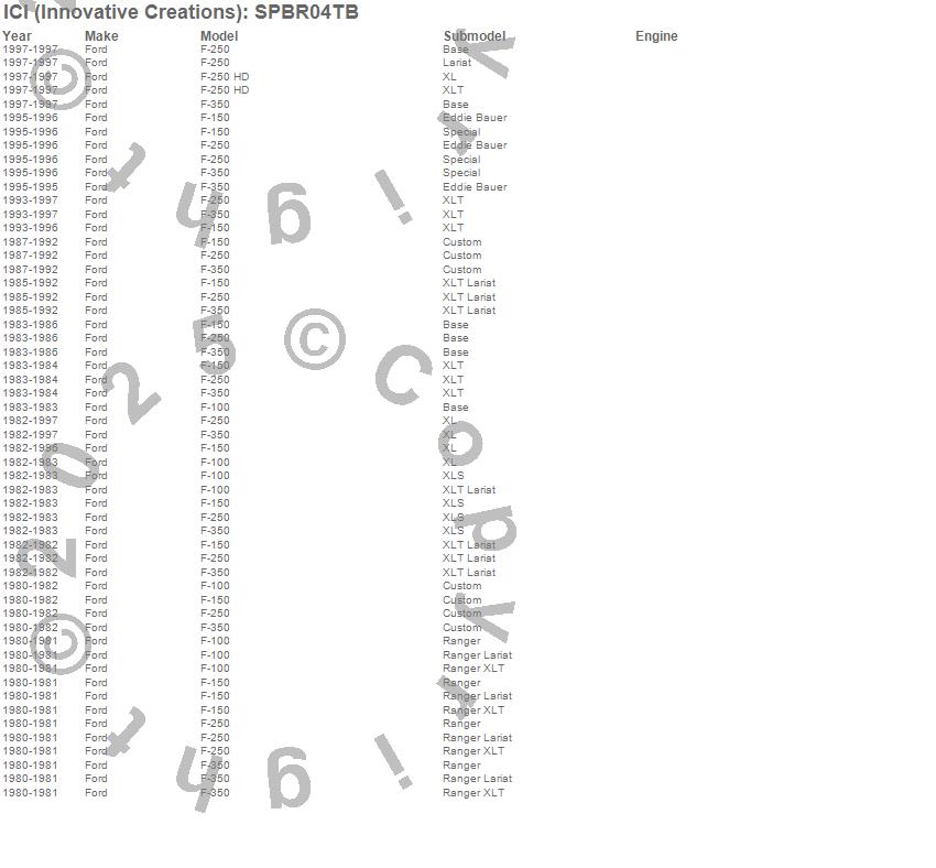 Below is an abbreviated list of applications for the Truck Bed Rail Cap.F-100, F-150, F-250, F-250 HD, F-350, Ford, 1998, 1997, 1996, 1995, 1994, 1993, 1992, 1991, 1990, 1989, 1988, 1987, 1986, 1985
