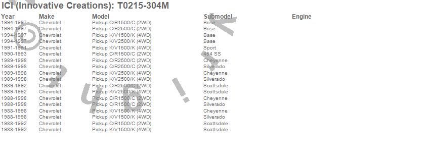 Below is an abbreviated list of applications for the Rocker Panel Molding.C1500 Pickup, C2500 Pickup, K1500 Pickup, K2500 Pickup, Chevrolet, 1999, 1998, 1997, 1996, 1995, 1994, 1993, 1992, 1991, 1990, 1989, 1988