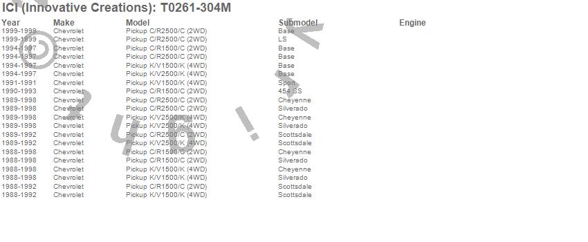 Below is an abbreviated list of applications for the Rocker Panel Molding.C1500 Pickup, C2500 Pickup, K1500 Pickup, K2500 Pickup, Chevrolet, 1999, 1998, 1997, 1996, 1995, 1994, 1993, 1992, 1991, 1990, 1989, 1988