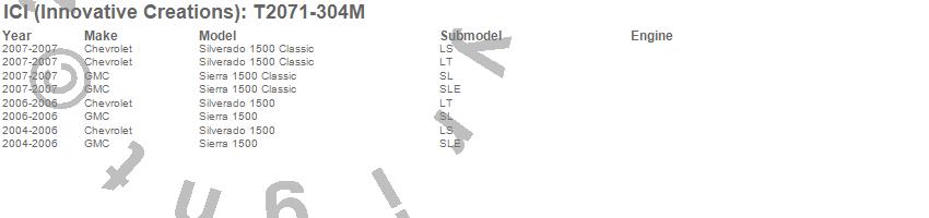Brand: ICI (Innovative Creations)Part Number: T2071-304MRocker Panel Molding Type: Stainless Steel - 5.5 in. Width - 10 pc. - Fits From The Body Side Molding DownUPC: 845426008847