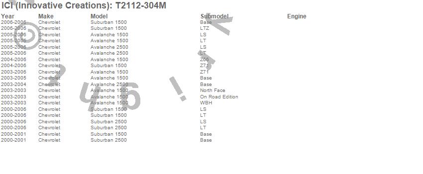 Below is an abbreviated list of applications for the Rocker Panel Molding.Avalanche 1500, Avalanche 2500, Suburban 1500, Suburban 2500, Chevrolet, 2006, 2005, 2004, 2003, 2002, 2001, 2000
