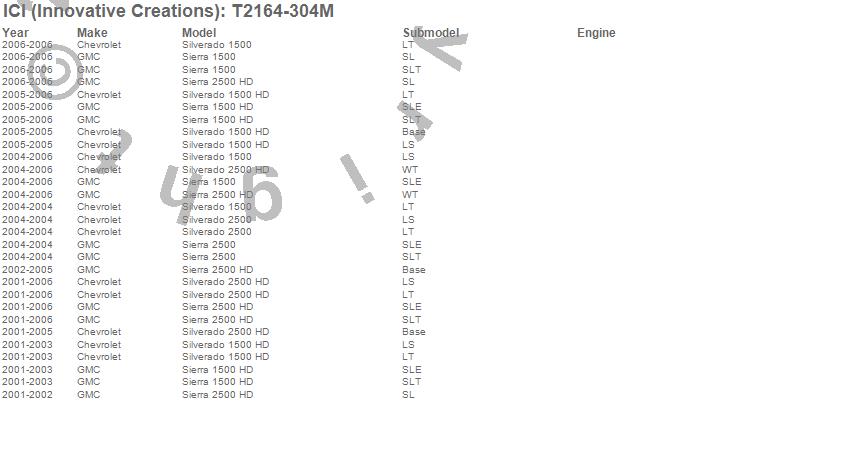 Below is an abbreviated list of applications for the Rocker Panel Molding.Sierra 1500, Sierra 1500 HD, Sierra 2500, Sierra 2500 HD, Silverado 1500, Silverado 1500 HD, Silverado 2500, Silverado 2500 HD, Chevrolet, GMC, 2006, 2005, 2004, 2003, 2002, 2001