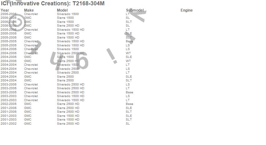 Below is an abbreviated list of applications for the Rocker Panel Molding.Sierra 1500, Sierra 1500 HD, Sierra 2500, Sierra 2500 HD, Silverado 1500, Silverado 1500 HD, Silverado 2500, Silverado 2500 HD, Chevrolet, GMC, 2006, 2005, 2004, 2003, 2002, 2001