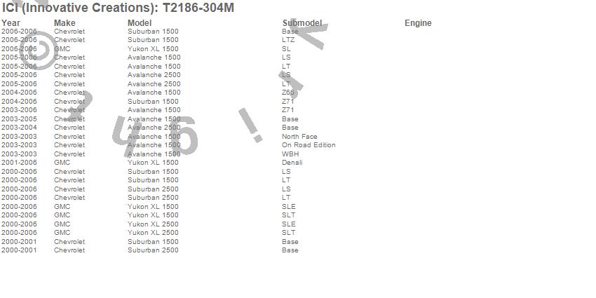 Below is an abbreviated list of applications for the Rocker Panel Molding.Avalanche 1500, Avalanche 2500, Suburban 1500, Suburban 2500, Yukon XL 1500, Yukon XL 2500, Chevrolet, GMC, 2006, 2005, 2004, 2003, 2002, 2001, 2000