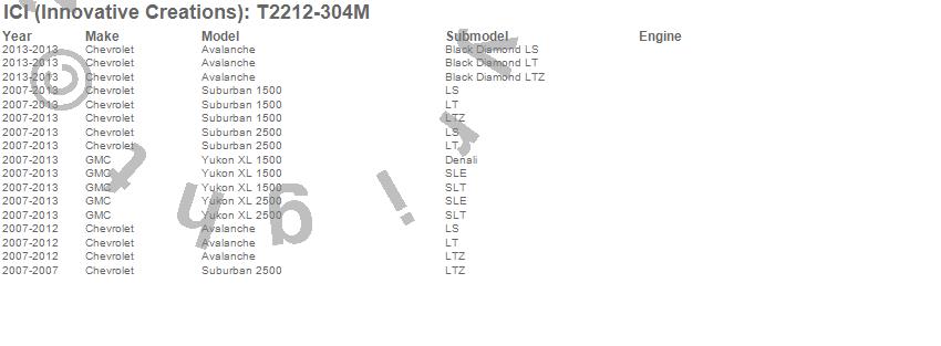 Below is an abbreviated list of applications for the Rocker Panel Molding.Avalanche, Suburban 1500, Suburban 2500, Yukon XL 1500, Yukon XL 2500, Chevrolet, GMC, 2013, 2012, 2011, 2010, 2009, 2008, 2007