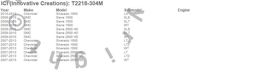 Brand: ICI (Innovative Creations)Part Number: T2218-304MRocker Panel Molding Type: Stainless Steel - 5.5 in. Width - 10 pc. - Fits From The Body Side Molding DownUPC: 845426010116