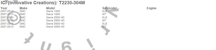 Brand: ICI (Innovative Creations)Part Number: T2230-304MRocker Panel Molding Type: Stainless Steel - 5.5 in. Width - 8 pc. - Fits From The Body Side Molding DownUPC: 845426010239