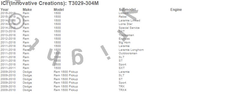 Brand: ICI (Innovative Creations)Part Number: T3029-304MRocker Panel Molding Type: Stainless Steel - 5.75 in. Width - 12 pc. - Fits Between Body Lines/Starts/Ends At A Specific Body Line Or ContourUPC: 845426010673