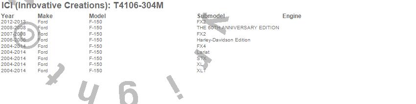 Below is an abbreviated list of applications for the Rocker Panel Molding.F-150, Ford, 2014, 2013, 2012, 2011, 2010, 2009, 2008, 2007, 2006, 2005, 2004
