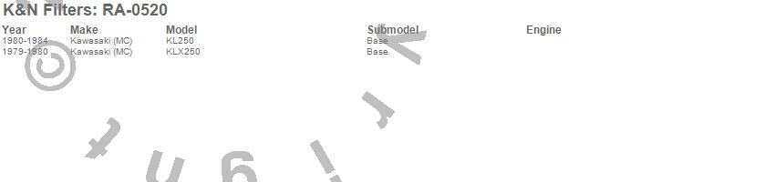 Below is an abbreviated list of applications for the Universal Air Cleaner Assembly.KL250, KLX250, Kawasaki (MC), 1984, 1983, 1982, 1981, 1980, 1979