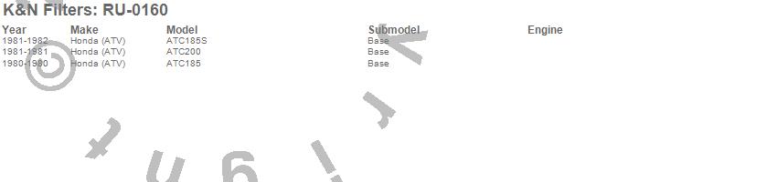 Brand: K&N FiltersPart Number: RU-0160Air Cleaner Assembly Type: Round Straight - OD-3 in. - Flange L-5/8 - Inside Flange 1.5 in. - Centered - Rubber End - Filter Length 4 in.UPC: 024844009470