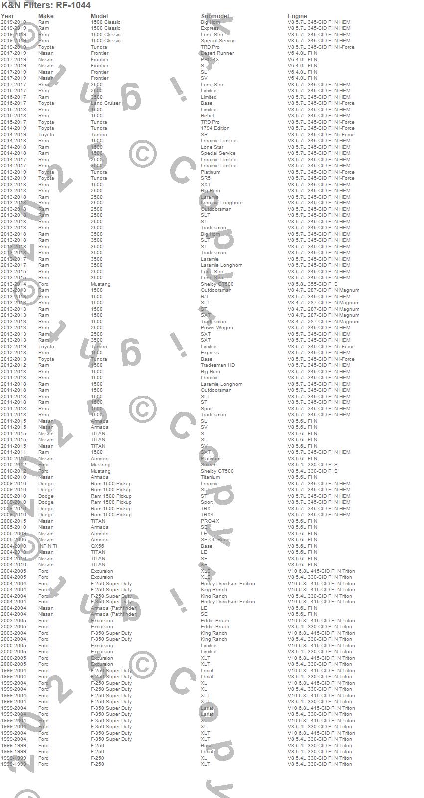 Below is an abbreviated list of applications for the Universal Air Cleaner Assembly.1500, 1500 Classic, 2500, 3500, Armada, Armada (Pathfinder), Excursion, F-250, F-250 Super Duty, F-350 Super Duty, Frontier, Land Cruiser, Mustang, QX56, Ram 1500, Titan, Tundra, Dodge, Ford, Infiniti