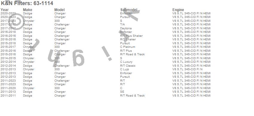 Below is an abbreviated list of applications for the 63 Series Aircharger Kit.300, Challenger, Charger, Chrysler, Dodge, 2019, 2018, 2017, 2016, 2015, 2014, 2013, 2012, 2011