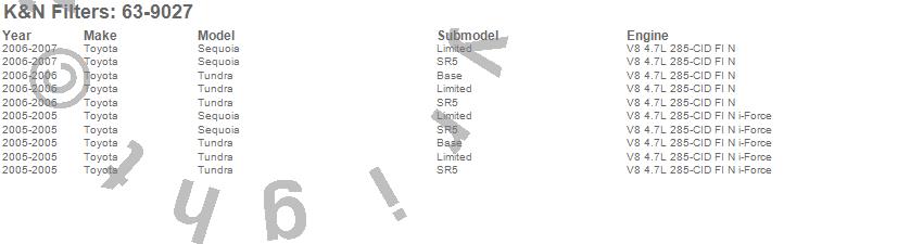 Below is an abbreviated list of applications for the 63 Series Aircharger Kit.Sequoia, Tundra, Toyota, 2007, 2006, 2005