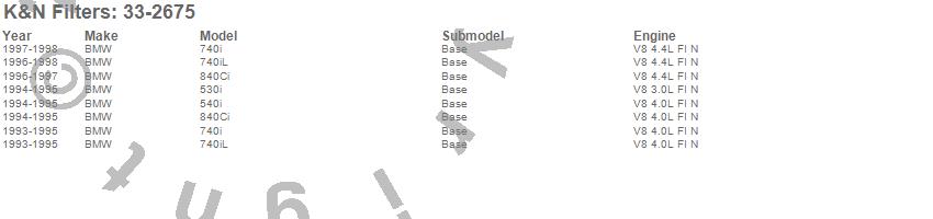 Below is an abbreviated list of applications for the Air Filter.530i, 540i, 740i, 740iL, 840Ci, BMW, 1998, 1997, 1996, 1995, 1994, 1993