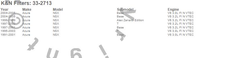 Below is an abbreviated list of applications for the Air Filter.NSX, Acura, 2005, 2004, 2003, 2002, 2001, 2000, 1999, 1998, 1997, 1996, 1995, 1994, 1993, 1992, 1991