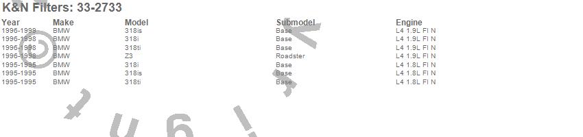 Below is an abbreviated list of applications for the Air Filter.318i, 318is, 318ti, Z3, BMW, 1999, 1998, 1997, 1996, 1995