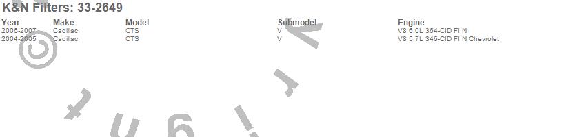 Below is an abbreviated list of applications for the Air Filter.CTS, Cadillac, 2007, 2006, 2005, 2004