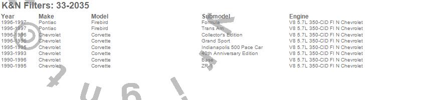 Below is an abbreviated list of applications for the Air Filter.Corvette, Firebird, Chevrolet, Pontiac, 1997, 1996, 1995, 1994, 1993, 1992, 1991, 1990