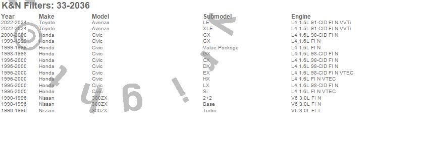 Below is an abbreviated list of applications for the Air Filter.300ZX, Civic, Honda, Nissan, 2000, 1999, 1998, 1997, 1996, 1995, 1994, 1993, 1992, 1991, 1990
