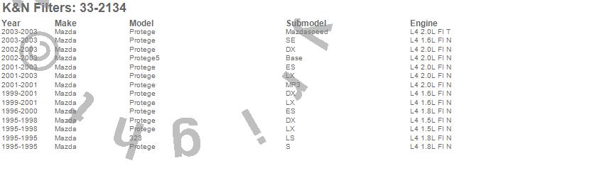Below is an abbreviated list of applications for the Air Filter.323, Protege, Protege5, Mazda, 2003, 2002, 2001, 2000, 1999, 1998, 1997, 1996, 1995