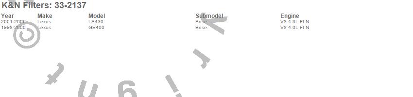 Below is an abbreviated list of applications for the Air Filter.GS400, LS430, Lexus, 2006, 2005, 2004, 2003, 2002, 2001, 2000, 1999, 1998