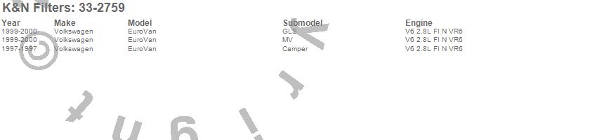 Below is an abbreviated list of applications for the Air Filter.EuroVan, Volkswagen, 2000, 1999, 1997