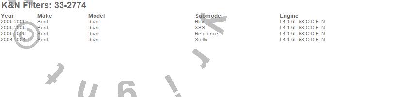 Below is an abbreviated list of applications for the Air Filter.Ibiza, Seat, 2006, 2005, 2004