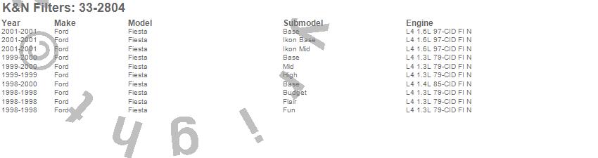 Below is an abbreviated list of applications for the Air Filter.Fiesta, Ford, 2001, 2000, 1999, 1998