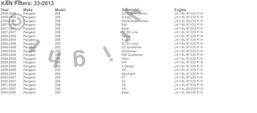 Below is an abbreviated list of applications for the Air Filter.206, Peugeot, 2008, 2007, 2006, 2005, 2004, 2003, 2002, 2001, 2000