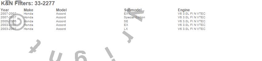 Below is an abbreviated list of applications for the Air Filter.Accord, Honda, 2007, 2006, 2005, 2004, 2003