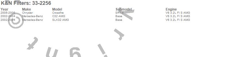 Below is an abbreviated list of applications for the Air Filter.C32 AMG, Crossfire, SLK32 AMG, Chrysler, Mercedes-Benz, 2006, 2005, 2004, 2003, 2002