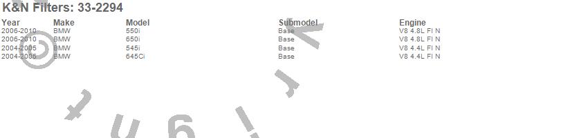Below is an abbreviated list of applications for the Air Filter.545i, 550i, 645Ci, 650i, BMW, 2010, 2009, 2008, 2007, 2006, 2005, 2004