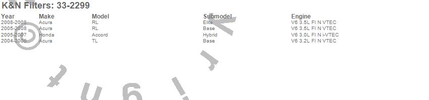 Below is an abbreviated list of applications for the Air Filter.Accord, RL, TL, Acura, Honda, 2008, 2007, 2006, 2005, 2004
