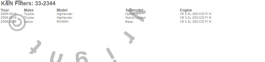 Below is an abbreviated list of applications for the Air Filter.Highlander, RX400h, Lexus, Toyota, 2010, 2009, 2008, 2007, 2006