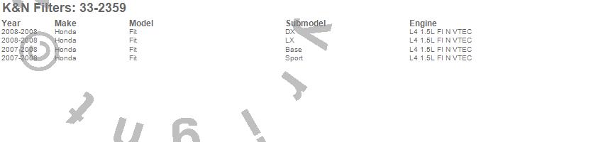 Below is an abbreviated list of applications for the Air Filter.Fit, Honda, 2008, 2007