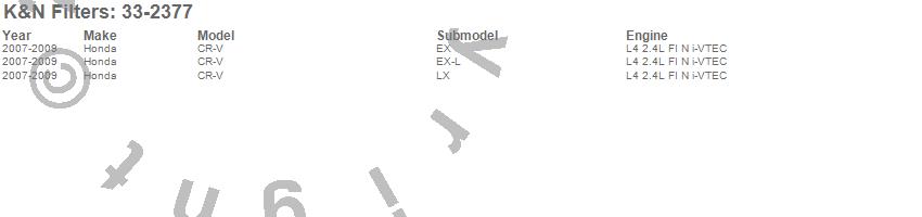Below is an abbreviated list of applications for the Air Filter.CR-V, Honda, 2009, 2008, 2007