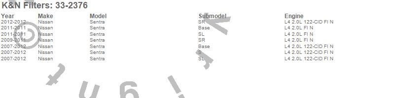 Below is an abbreviated list of applications for the Air Filter.Sentra, Nissan, 2012, 2011, 2010, 2009, 2008, 2007